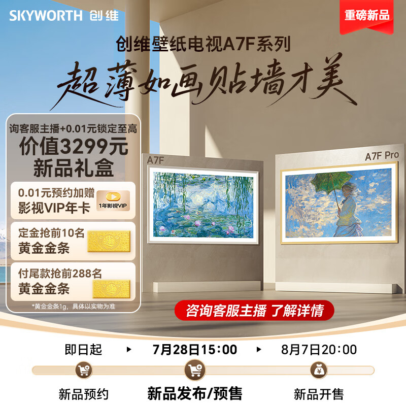 自营创维壁纸电视75A7F 75英寸超薄壁画艺术mini led 智能平板液晶电视机75吋 补贴20% A7E升级款