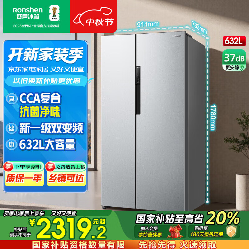 旗舰店容声632升冰箱双开门家用对开门一级能效变频风冷无霜超大容量超薄银色电冰箱双门冰箱 以旧换新 BCD-632WD11HP 凯撒银