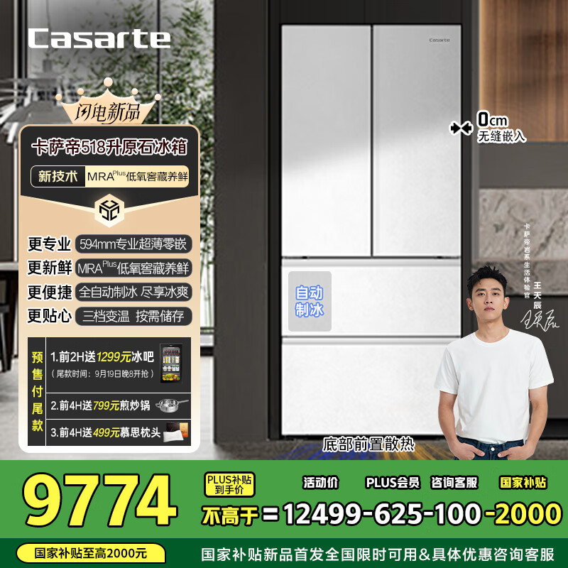 自营卡萨帝(Casarte)原石系列MRA PLUS低氧窖藏养鲜法式多门全自动制冰家用电冰箱一级能效以旧换新BCD-518WGCFDMGWUU1
