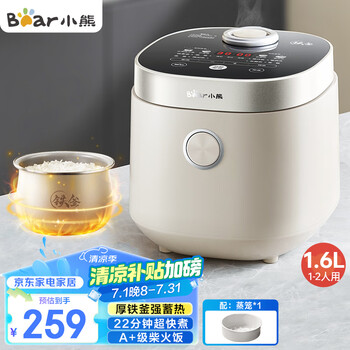 自营小熊(Bear)电饭煲 1-2人0氟铁釜电饭锅 迷你家用小容量多功能微压智能预约柴火饭1.6L DFB-C16R2