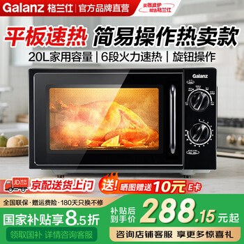 旗舰店格兰仕(Galanz) 微波炉家用 20升容量 700W加热 平板均匀加热 多功能微波炉小型 XB1【双旋钮操作平板微波炉】