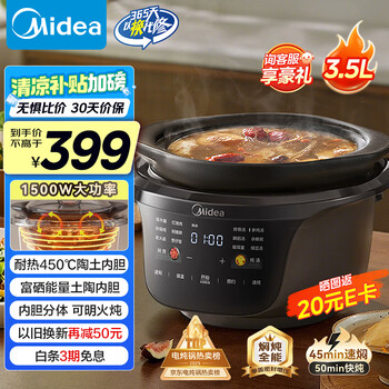自营美的(Midea)全能电炖锅 电炖盅电砂锅炖汤盅煲汤锅 燕窝煮粥火锅3.5L焖炖饭煲一体多功能锅DGS3566