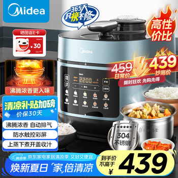 自营美的(Midea)低脂浓香电压力锅5L低音自动排气2200W猛火IH智能预约112KPa可调高压锅4-6人0涂层电饭煲S5892NF