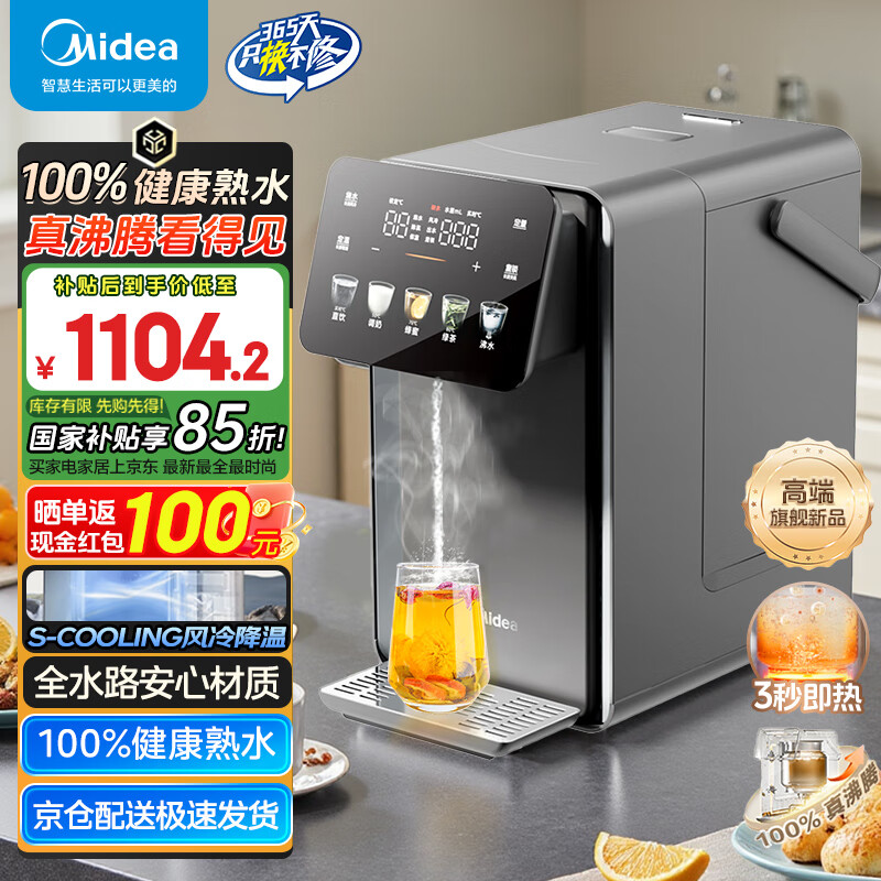 旗舰店美的(Midea)小魔方plus即热熟水机 饮水机电热水瓶电水瓶 烧水壶电热水壶 保温恒温一体真沸腾除氯32FPRO 5L 【100%真沸腾】3秒即热熟水机