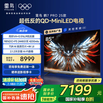 自营FFALCON雷鸟鹤7 PRO 25款 85英寸 QD-MiniLED家电国家补贴 0.5%LR低反膜 一级能效智能电视机85R795C