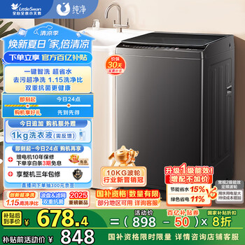 自营小天鹅(LittleSwan)波轮洗衣机全自动 直驱变频 深层超净洗 一键智洗 10公斤 TB100V26DT 家电国家补贴20% 以旧换新