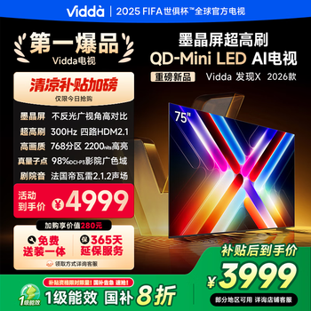 自营Vidda发现X 2026款 75英寸 300Hz超高刷 墨晶屏 QD-Mini LED 以旧换新家电国家补贴液晶海信电视75VX5Q