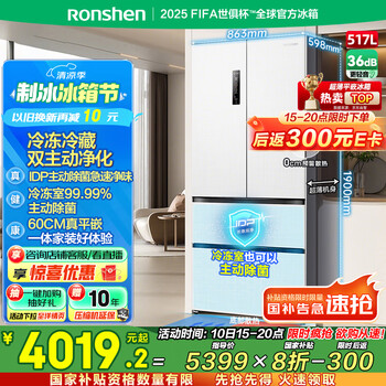 自营容声517升双净法式多门四开门超薄零嵌入式电冰箱一级能效家用风冷无霜BCD-517WD2MPQLA白国家补贴20%