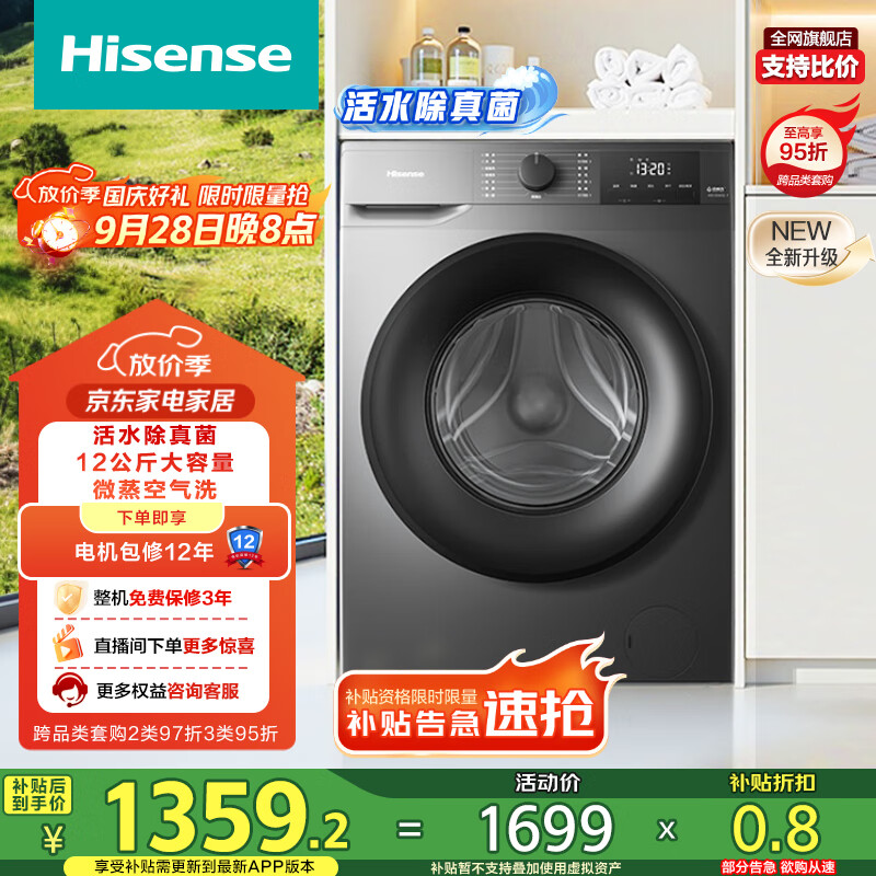 自营海信(Hisense)滚筒洗衣机全自动 12公斤超大容量洗烘一体超薄高洗净比 活水洗 WD120A0Q-7 以旧换新补贴20%
