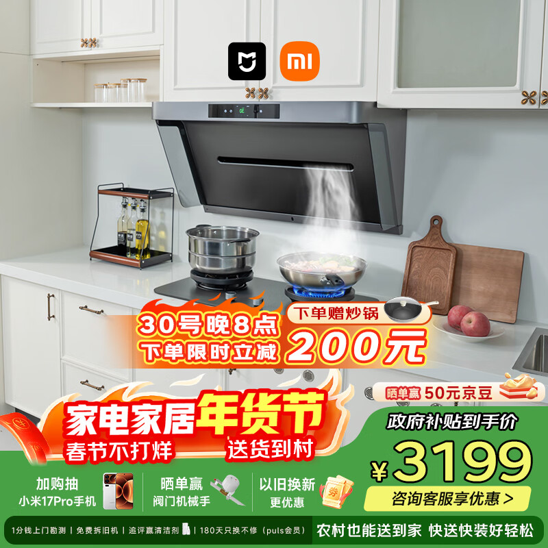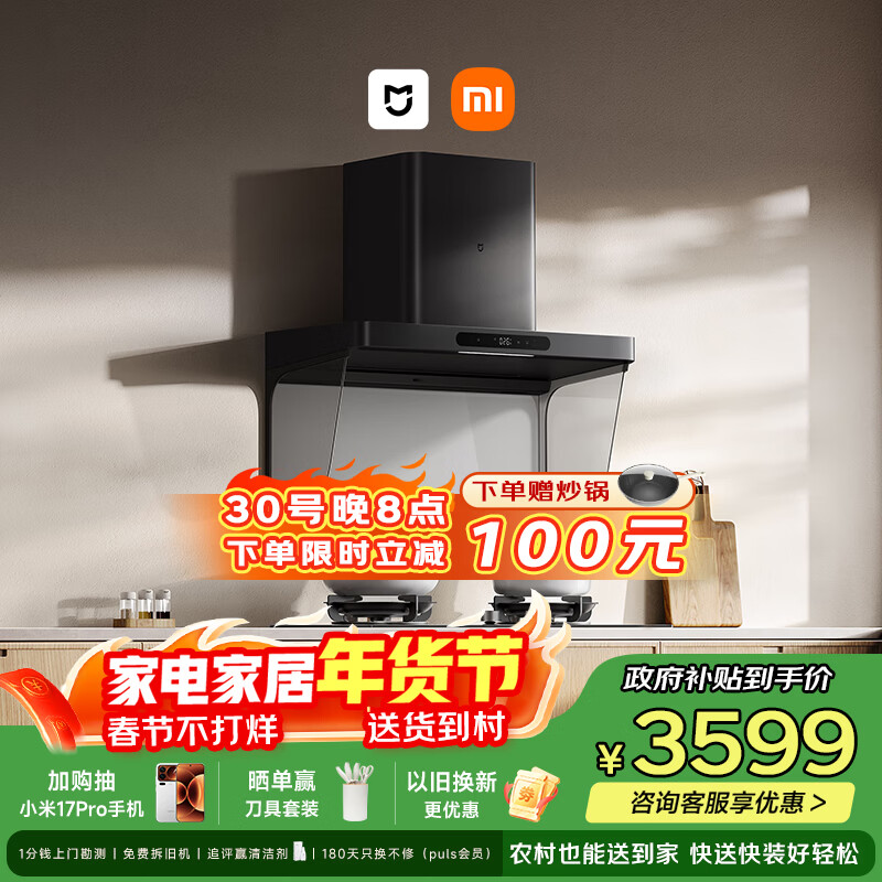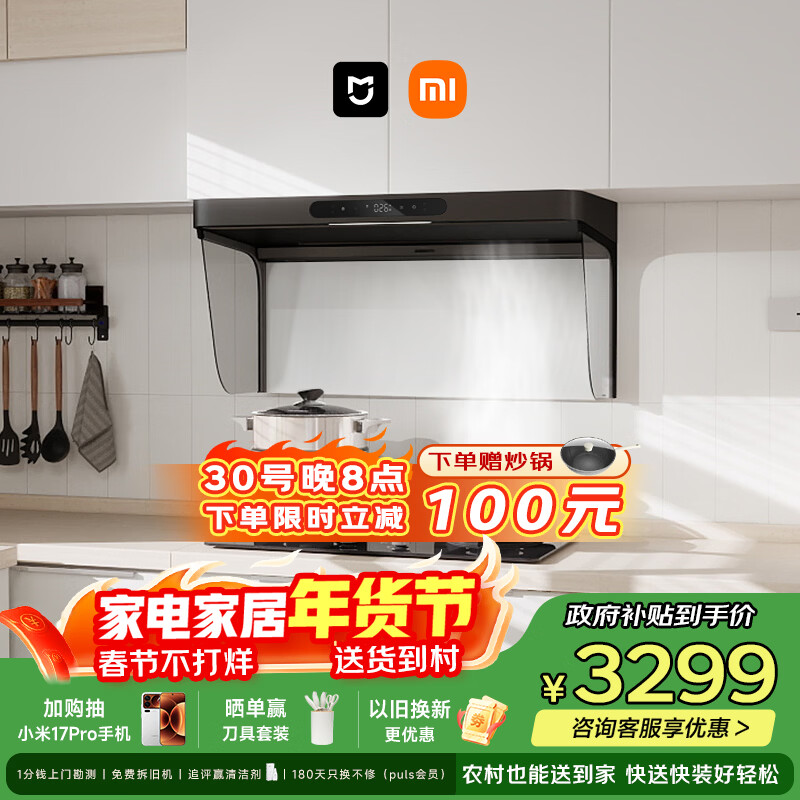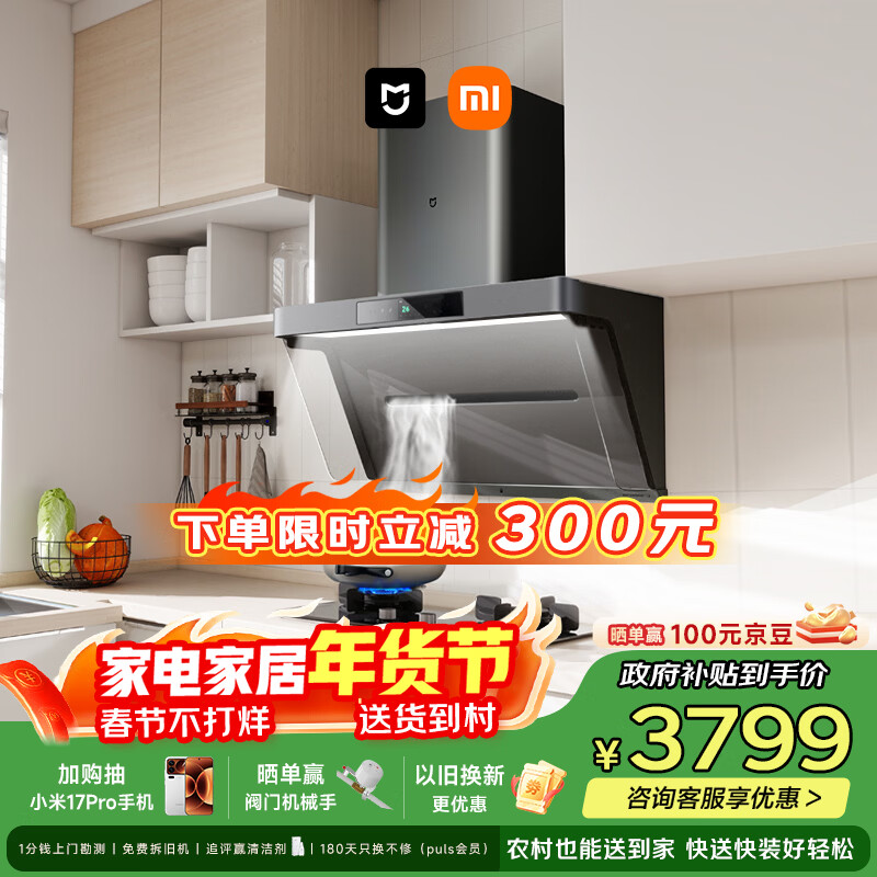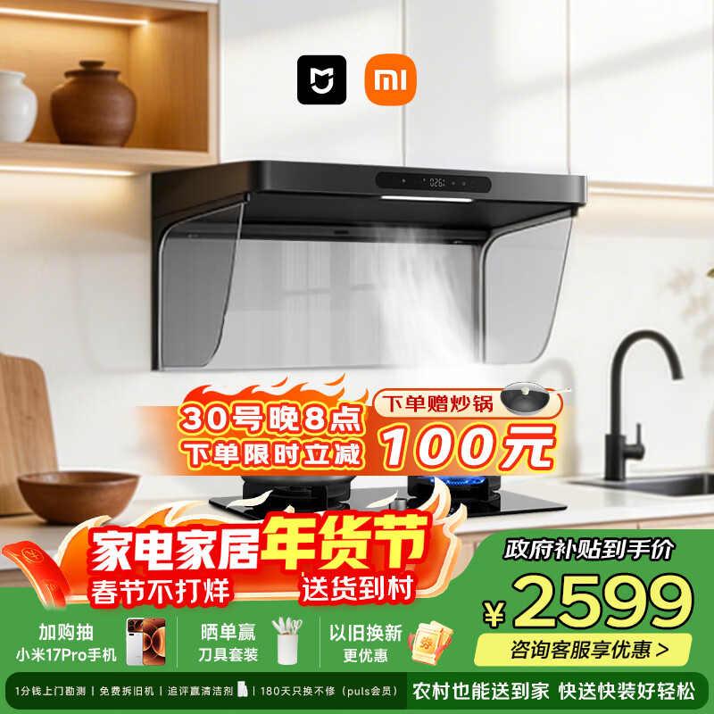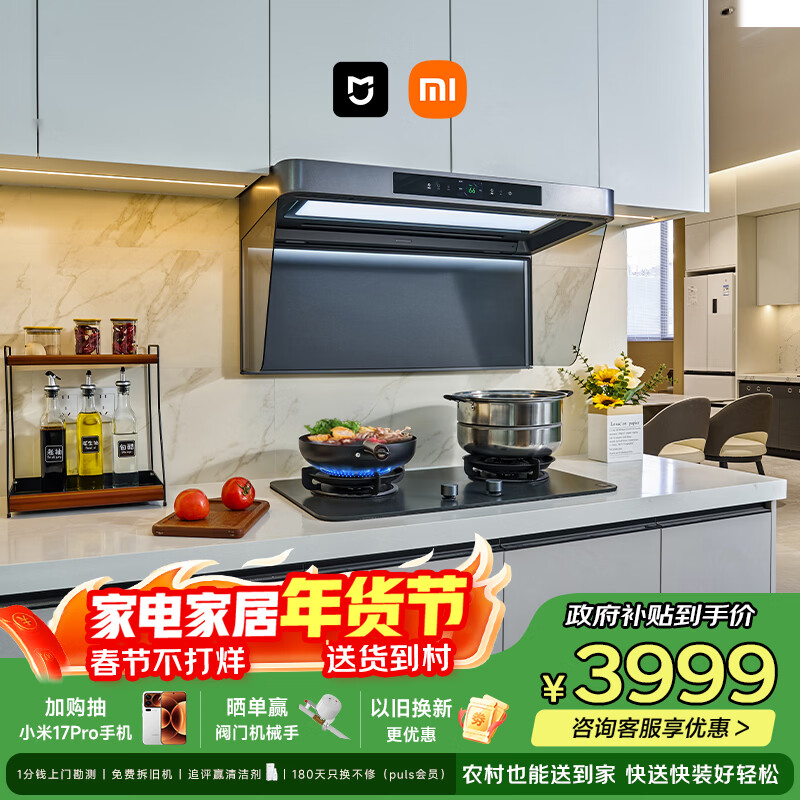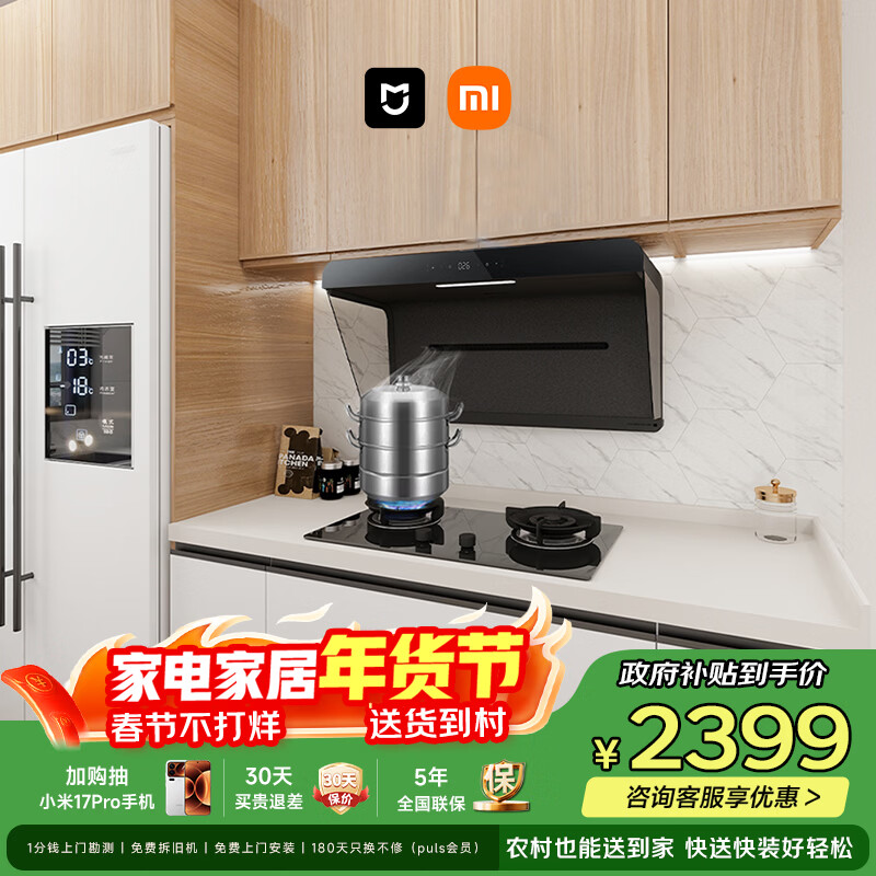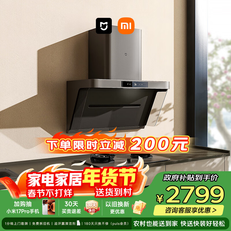 自营米家小米抽吸油烟机净烟机P2以旧换新家用家用大吸力上门安装 燃气泄漏监测 免拆洗可配燃气灶MJ06CY