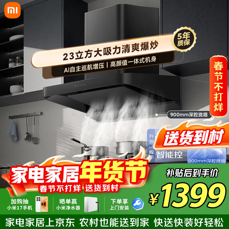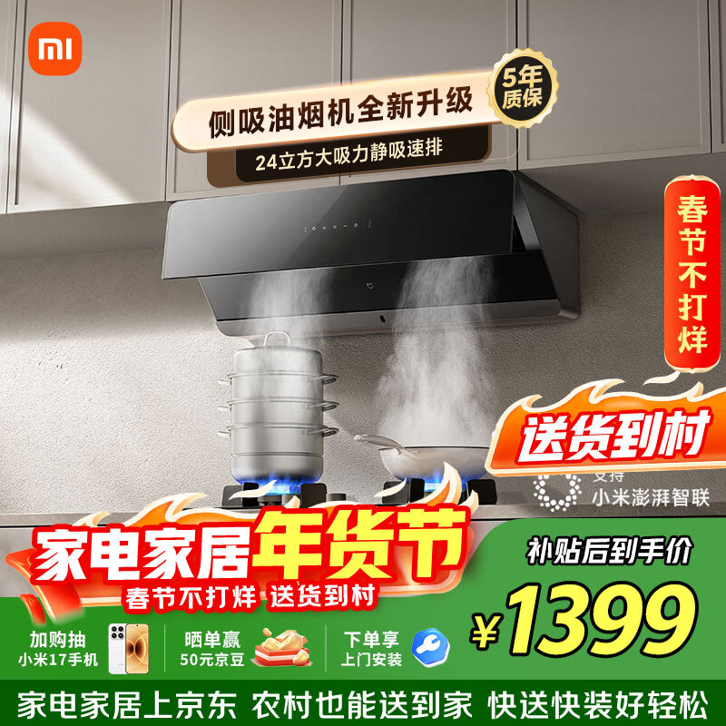自营米家小米抽吸油烟机 净烟机S1 以旧换新 家用大吸力 上门安装一级能效侧吸可配燃气灶MJ05CY