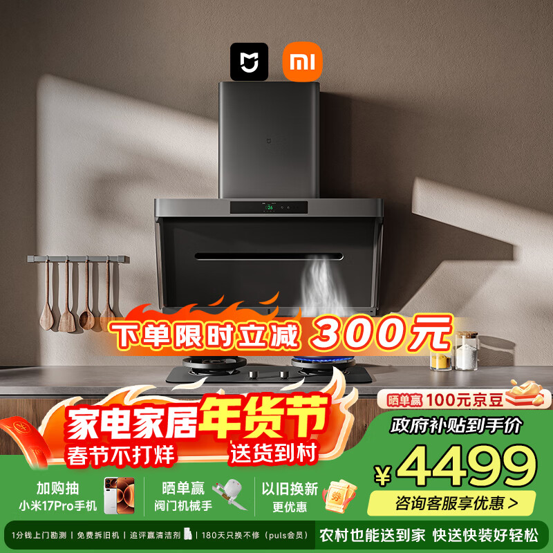 自营米家小米抽吸油烟机炉灶套装净烟机S20以旧换新上门安装家用大吸力易清洁【定时燃气灶套装】MJ10CY