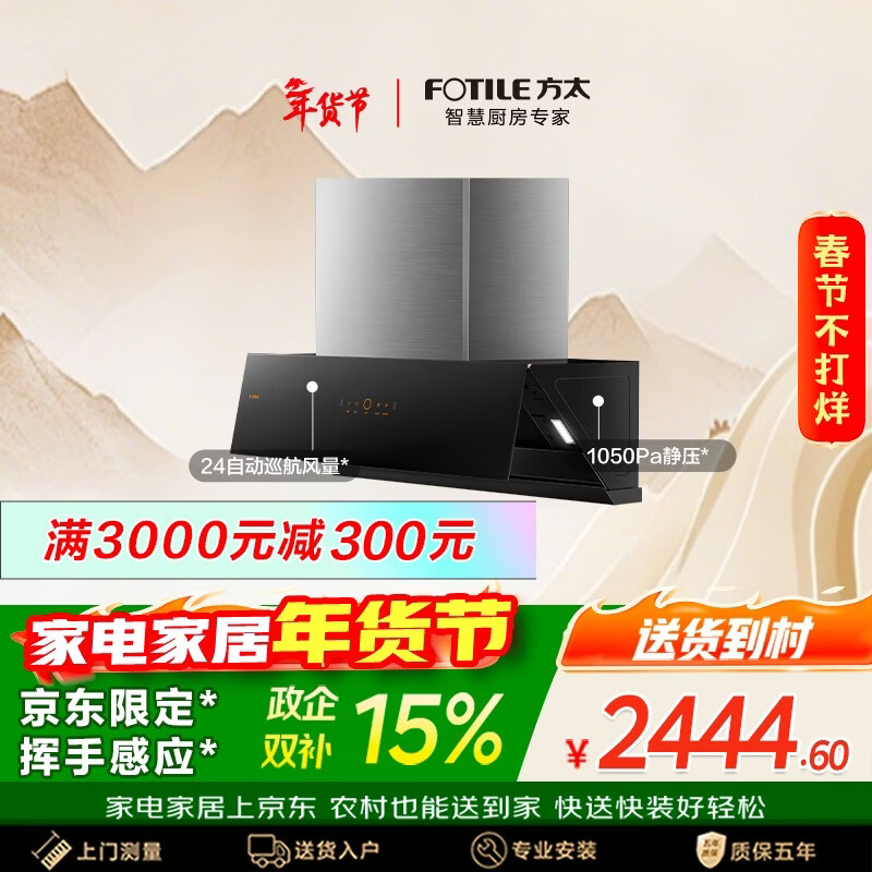 自营方太02-JCD10TA侧吸24风量 京东限定 风魔方升级 小尺寸【推荐灶TF27B】抽吸油烟机家用厨房 以旧换新