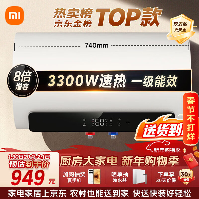 自营米家小米智能大水量电热水器60升N1 3300W变频速热增容家用免换镁棒储水式一级能效以旧换新MJ03