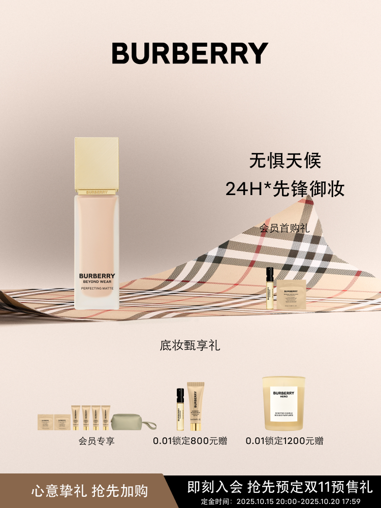 旗舰店【双十一提前加购】BURBERRY博柏利风衣粉底液保湿不脱妆防水哑光