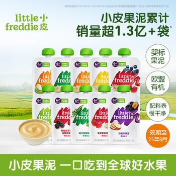 旗舰店小皮(Little Freddie)【欧盟有机】果泥多口味婴幼儿无添加辅食泥西梅泥宝宝果泥 缤纷果泥10口味10袋 组合装