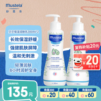 自营妙思乐(Mustela)儿童保湿润肤乳四季面霜300ml*2婴儿润肤乳身体乳保湿滋润面霜
