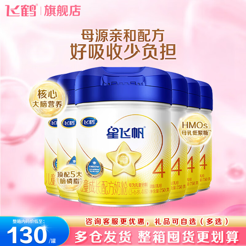旗舰店飞鹤星飞帆4段儿童成长奶粉 (3-6岁适用) 750g克 星飞帆4段750g*6罐