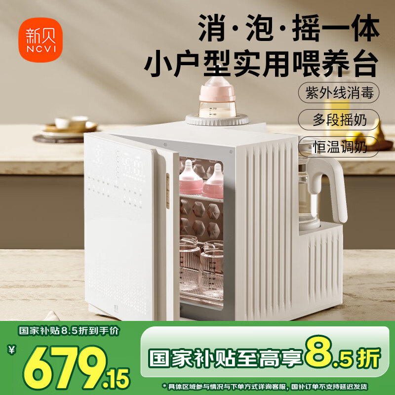 自营新贝紫外线奶瓶消毒柜 婴儿摇奶器 恒温壶 泡奶机三合一喂养台8050