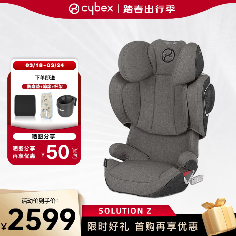 自营cybex赛百斯儿童安全座椅3-12岁isofix硬接口大童便携座椅Solution Z 珊瑚灰 plus