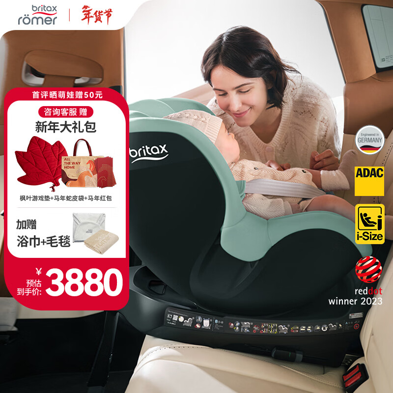 旗舰店宝得适(BRITAX)宝宝儿童安全座椅0-4岁360度旋转汽车ISOFIX硬接口双面骑士PLUS 双面骑士PLUS松石绿