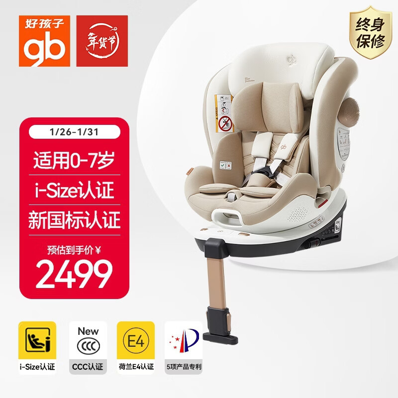 自营好孩子(gb)安全舱1号S婴儿8系高速儿童360旋转汽车安全座椅0-7岁 奶昔白