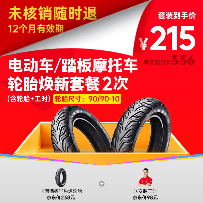 自营固满德电动车轮胎卡半热熔轮胎免费上门服务一年内未核销可退90/90-10