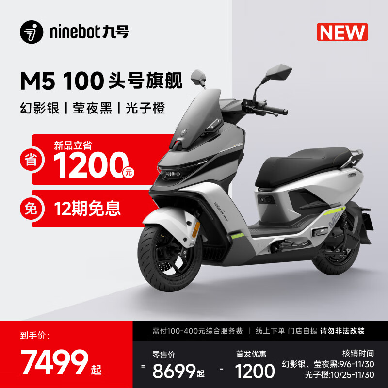 旗舰店九号(Ninebot)【新品】电动摩托车M5 100 高阶电摩革新者 铅酸电摩【门店自提】 幻影银/莹夜黑/光子橙