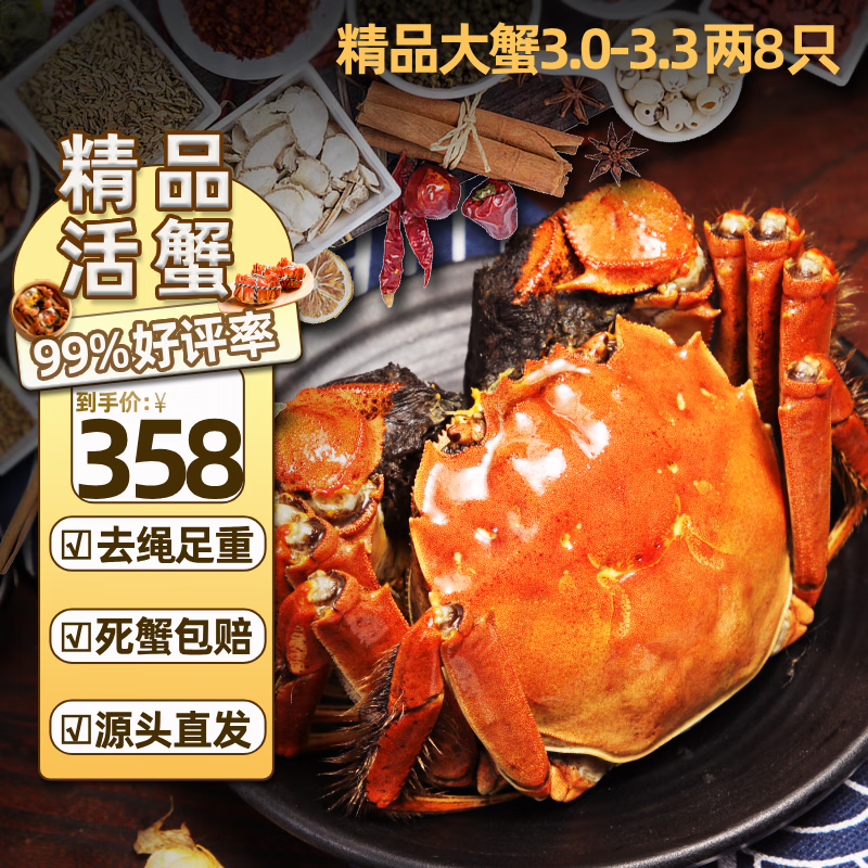 自营【活蟹】湖中秋色大闸蟹鲜活螃蟹现货六月黄3.0-3.3两8只礼盒装源头直发