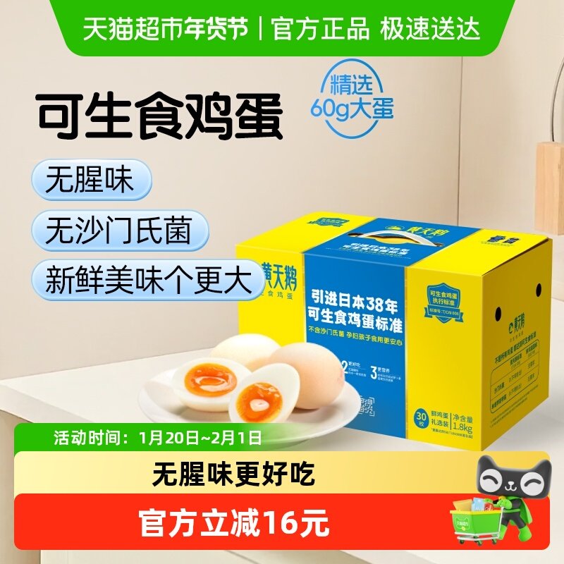黄天鹅L级大蛋可生食鸡蛋新鲜营养大个60g*30礼盒无农残顺丰速达