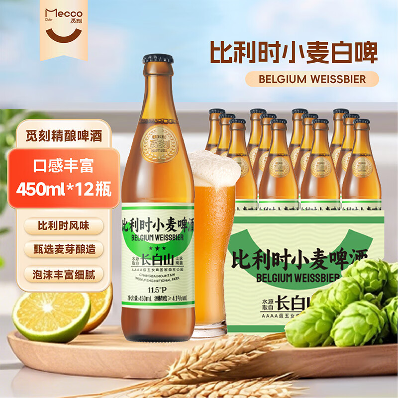 自营觅刻精酿啤酒比利时小麦白啤原浆艾尔啤酒450ml*12瓶清新水果香