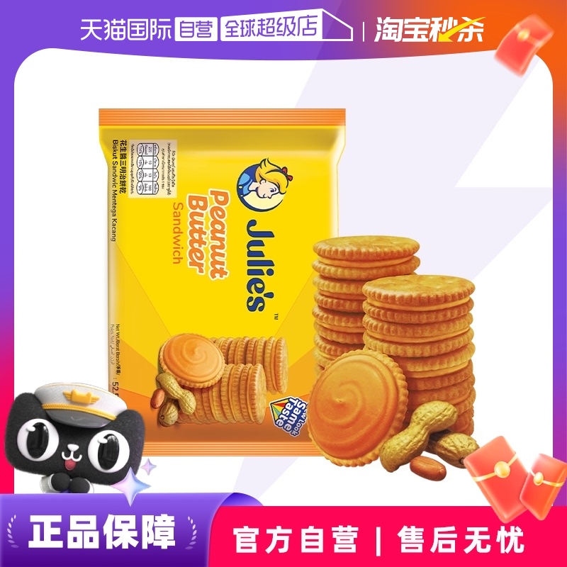 自营【自营】马来进口julies茱蒂丝花生酱三明治夹心饼干休闲零食袋装