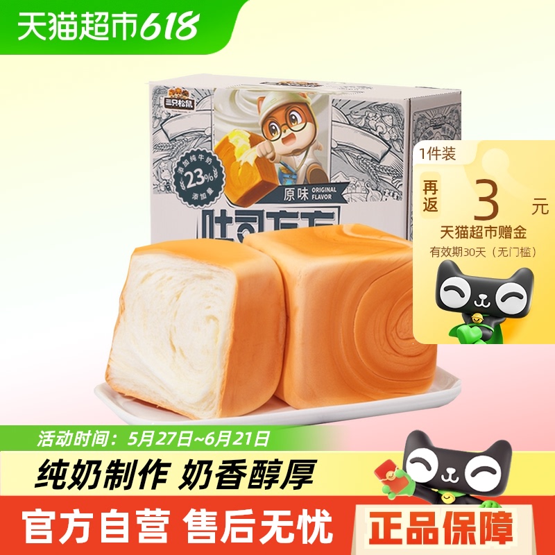 三只松鼠纯奶手撕面包魔方吐司方方休闲零食代餐早餐面包
