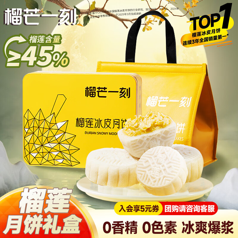 旗舰店榴芒一刻榴莲冰皮月饼礼盒流心月饼爆浆榴莲月饼礼盒企业团购送礼 【经典款】榴莲冰皮月饼100g*6枚