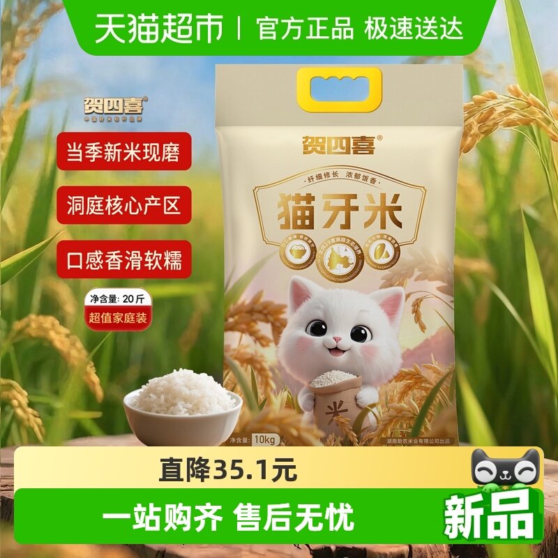 贺四喜猫牙米长粒大米10kg家庭装饭香浓郁口感弹糯