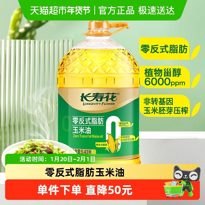 长寿花零反式脂肪玉米油5.43L非转基因压榨工艺健康家用食用油