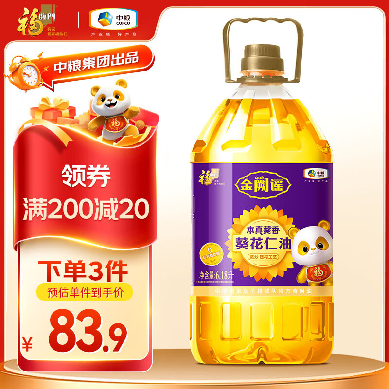 自营福临门食用油 金阙谣 本真葵香 葵花仁油6.18L