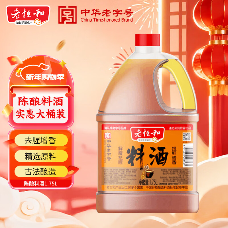 自营老恒和 料酒1.75L 陈年黄酒酿造 去腥解膻增味添香大桶 宴会家用调味料