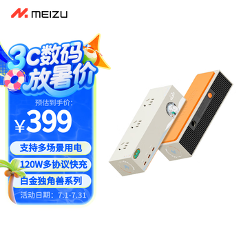 自营魅族(MEIZU)PANDAER 120W GaN 桌面充电站PRO 白金独角兽 插座插线板 支持电脑/平板/苹果手机等多设备快充
