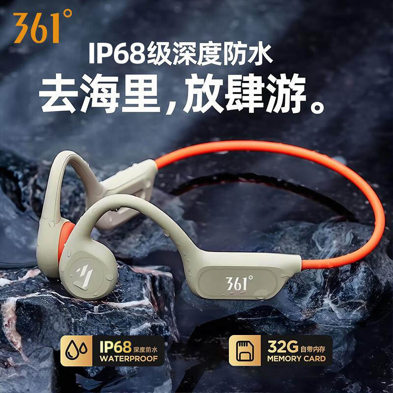 自营361°骨传导耳机蓝牙耳机开放式IP68级防水游泳耳机运动跑步健身户外骑行超长续航运动耳机32G内存YDG01