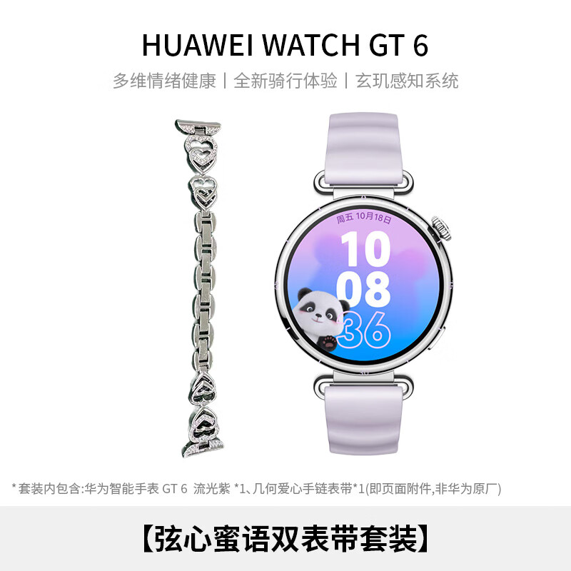 自营HUAWEI WATCH GT 6 流光紫【弦心蜜语双表带套装】 41mm智能手表多维情绪健康全新骑行体验