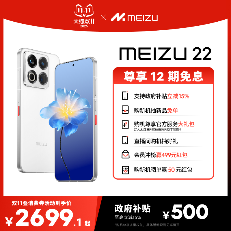 旗舰店【政府补贴立减15%|12期免息】Meizu魅族 22 手机新品官方旗舰店5000万旗舰四主摄直屏拍照手机高通骁龙note