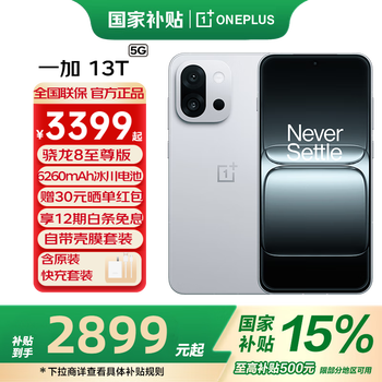 旗舰店一加13T 性能超强小直屏 骁龙 8至尊版 冰川电池 AI 新款5G游戏电竞 一加13t OPPO智能手机 晨雾灰 12GB+256GB 全网通 官方标配