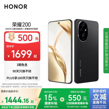 自营荣耀200 旗舰级青海湖电池 绿洲护眼屏 雅顾光影主摄 12+512 绒黑色 AI 新款5G拍照智能手机 国家补贴