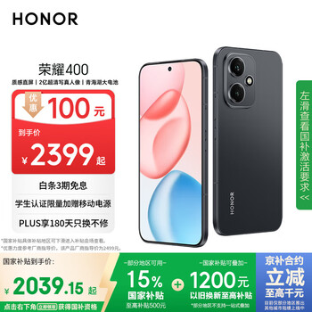 自营荣耀400 AI 2亿超清写真人像 7200mAh青海湖大电池 12+256 幻夜黑 5G AI 新款 学生 拍照手机 国家补贴