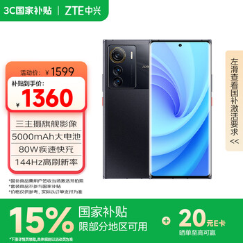 自营中兴(ZTE)Axon 50【国家补贴】 骁龙8+ 144Hz高刷 6400万三摄 12GB+512GB曜金黑 单系统 5G拍照手机