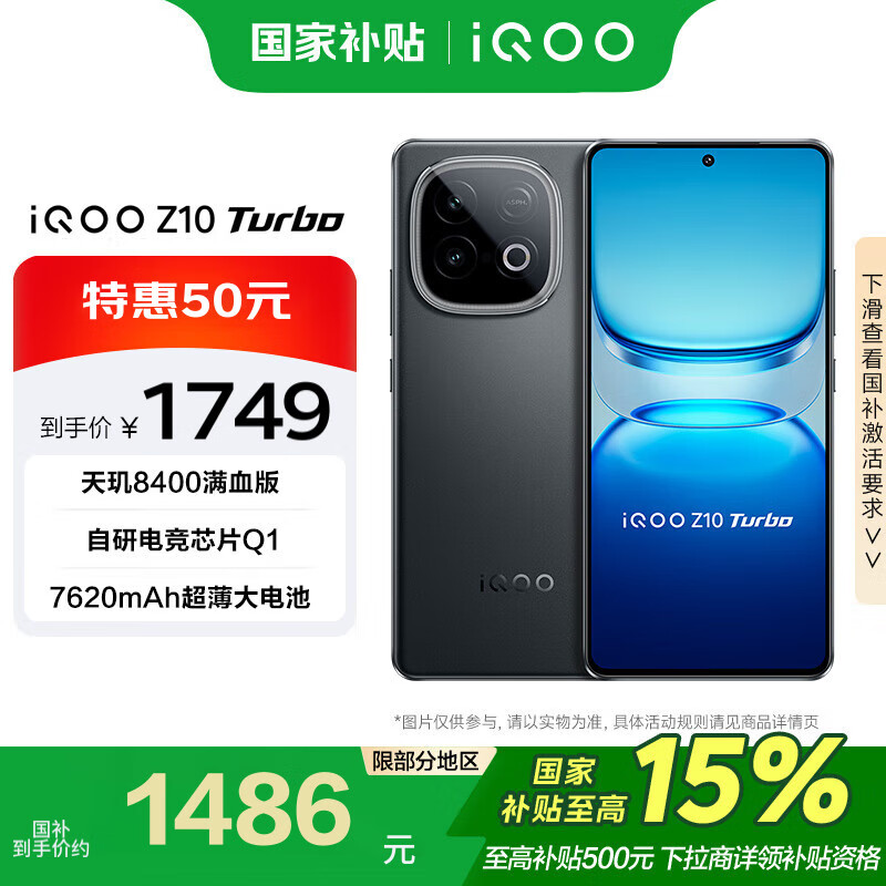 自营vivo iQOO Z10 Turbo 12GB+256GB 星穹黑 天玑8400满血版 7620mAh超薄蓝海电池 手机【移动补贴】