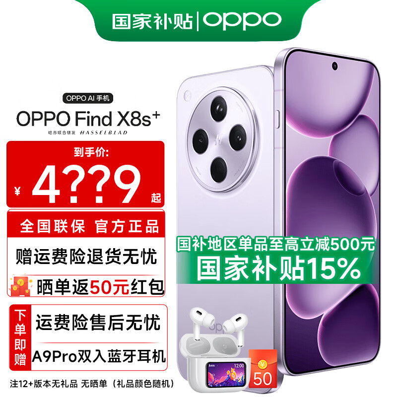 旗舰店OPPO Find X8s+ 极窄四等边 天玑9400+ 哈苏人像 超长续航电池 AI 5G手机 风信紫 12GB+256GB 【官方标配】