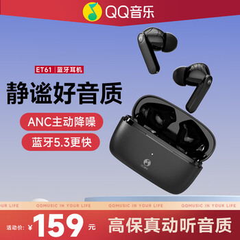 旗舰店QQ音乐ET61真无线主动降噪入耳式运动防水通话音乐游戏通用超长续航蓝牙耳机无线 黑色