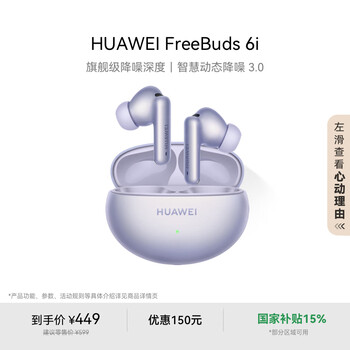 自营华为FreeBuds 6i 真无线降噪蓝牙耳机 旗舰级降噪深度 音乐游戏 安卓/苹果手机通用 流光紫